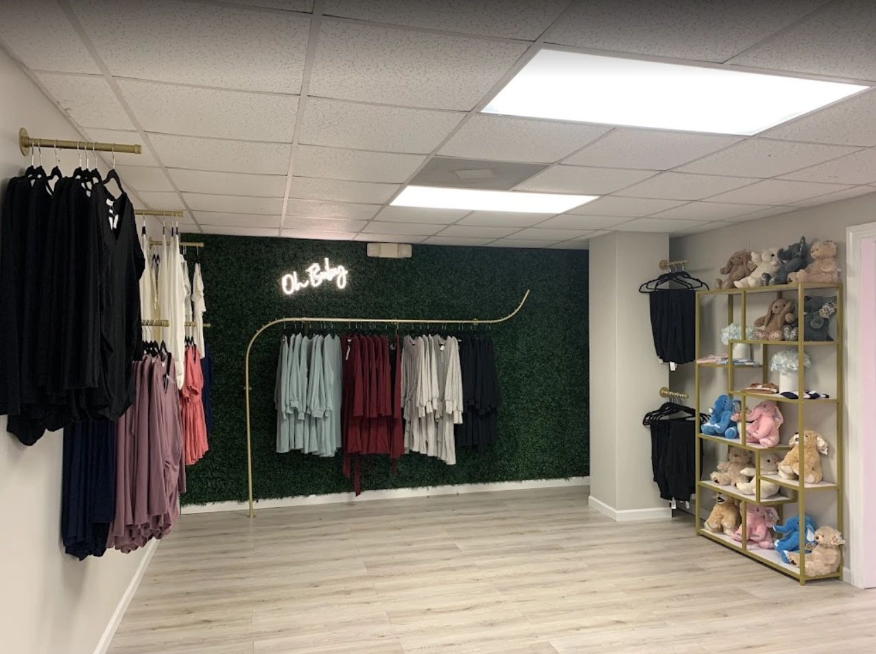 We have a small variety of maternity clothes. Please feel free to show up to your appointment early to look around or stay afterwards to shop our boutique.